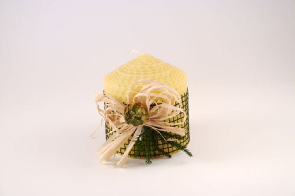 Candela di pura cera d'api con il disegno delle celle dell'alveare.
